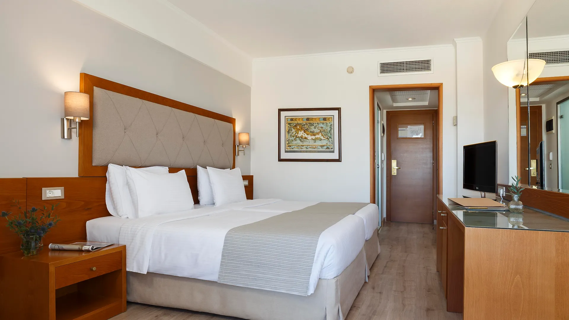 Das Hotel umfasst 136 Zimmer mit einem Mini-Bar-Kühlschrank und Ausstattung zur Kaffee- & Teezubereitung. Außerdem gibt es moderne Annehmlichkeiten — einen Flachbildfernseher mit Satellitenkanälen. Die Zimmer stellen ein privates Bad mit einem Haartrockner und Handtüchern zur Verfügung, einige überblicken zudem das Meer. Die Bäder sind mit einem Jacuzzi und einer Sauna ausgestattet und verfügen zudem über einen Haartrockner und Handtücher.